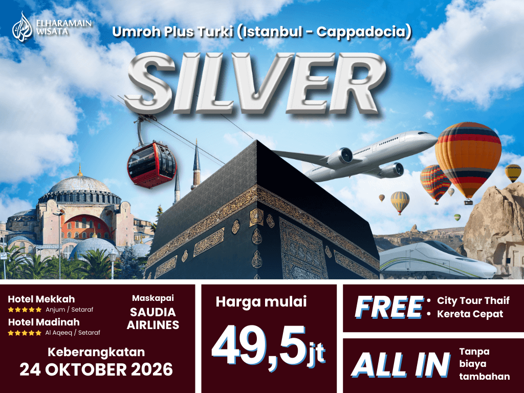 Umroh Plus Turki SILVER ( Cappadocia-Istanbul ) Saudia Landing Madinah + Thaif + Kereta Cepat (24 Oktober 2026)