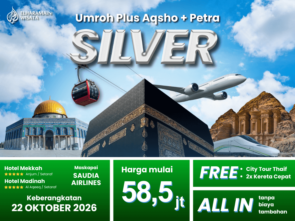 Umroh SILVER Plus Aqso + Petra Saudia Landing Jeddah + Thaif + Kereta Cepat (22 Oktober 2026)
