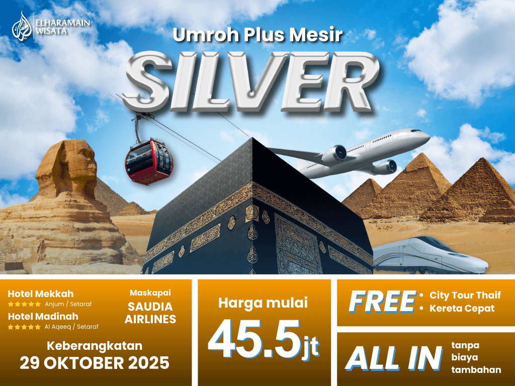 Umroh Plus Mesir (Cairo -Alexandria) Saudia Landing Madinah + Thaif + Kereta Cepat (SILVER) 29 Oktober 2025