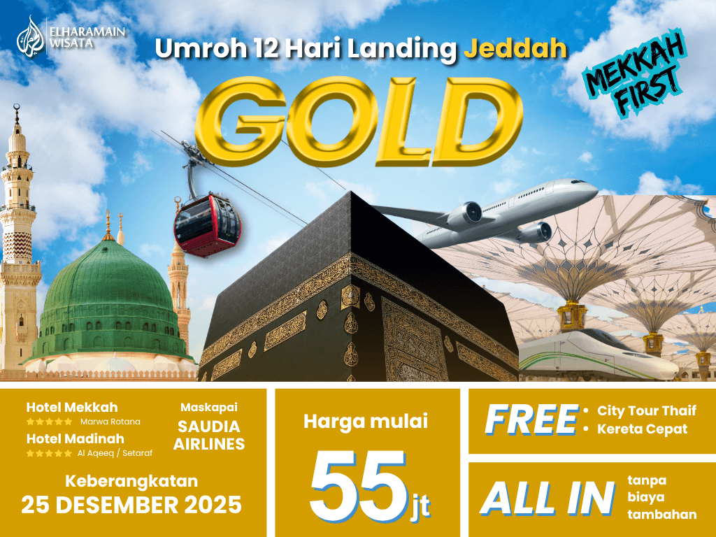 Umroh Akhir Tahun GOLD 12 Hari Saudia Landing Jeddah + Thaif + Kereta Cepat (25 Desember 2025)