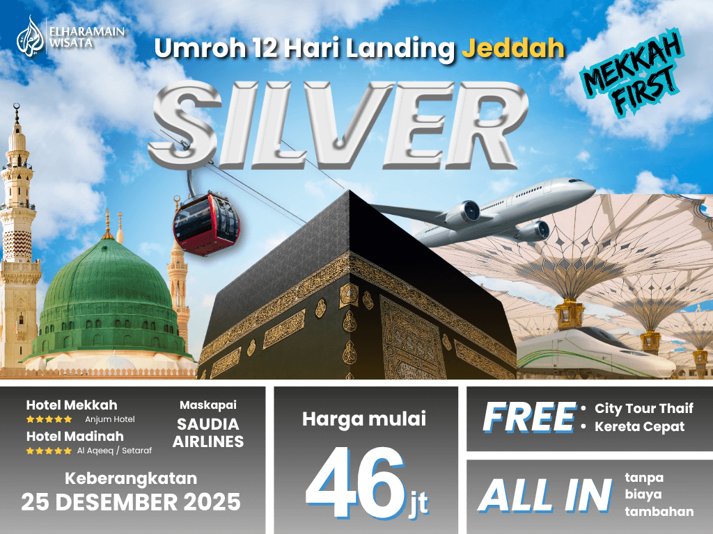 Umroh Akhir Tahun SILVER 12 Hari Saudia Landing Jeddah + Thaif + Kereta Cepat (25 Desember 2025)