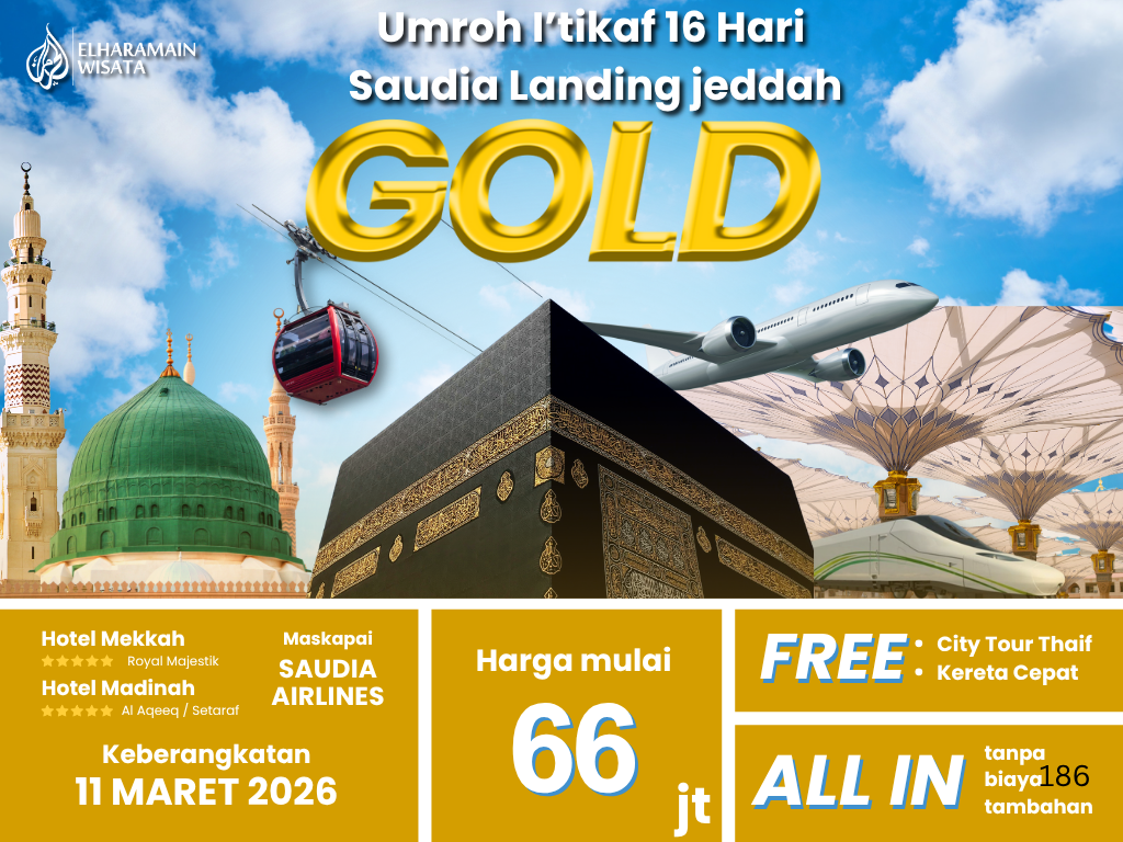 Umroh I'Tikaf Lailatul Qadr 16 Hari Idul Fitri Di Haram + Thaif + Kereta Cepat (GOLD) 11 Maret 2026