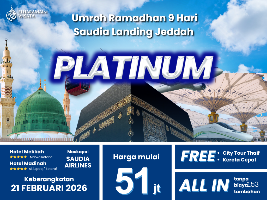 Umroh Ramadhan PLATINUM 9 Hari Saudia Landing Jeddah + Thaif + Kereta Cepat (21 Februari 2026)