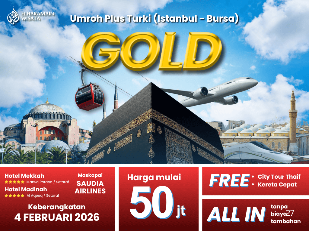 Umroh GOLD Plus Turki (Istanbul -Bursa ) Saudia Landing Madinah + Thaif + Kereta Cepat (4 Februari 2026)