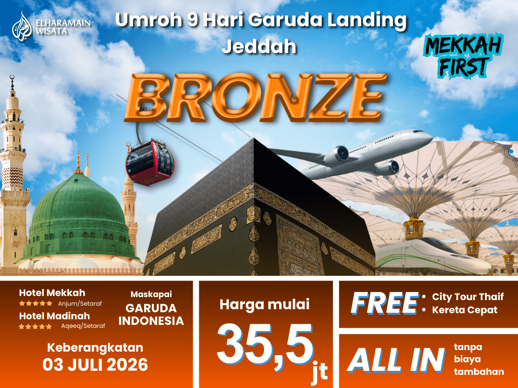 Umroh BRONZE 9 Hari Garuda Landing Jeddah + Thaif + Kereta Cepat (03 Juli 2026) Makkah First