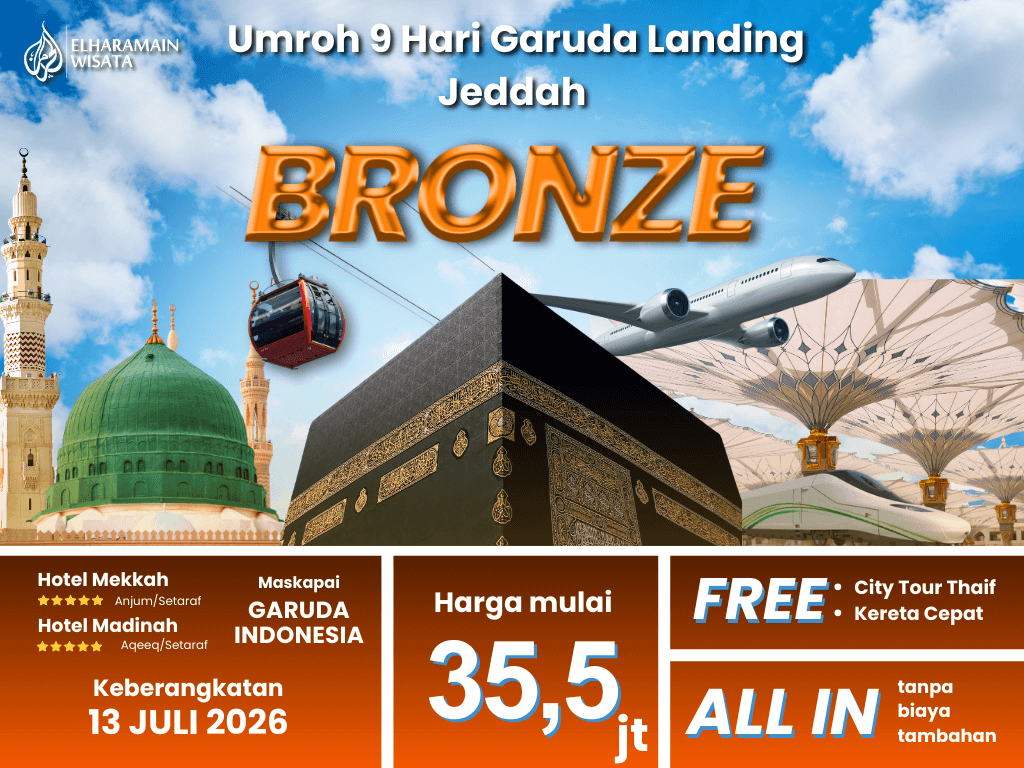 Umroh BRONZE 9 Hari Garuda Landing Jeddah + Thaif + Kereta Cepat (13 Juli 2026)