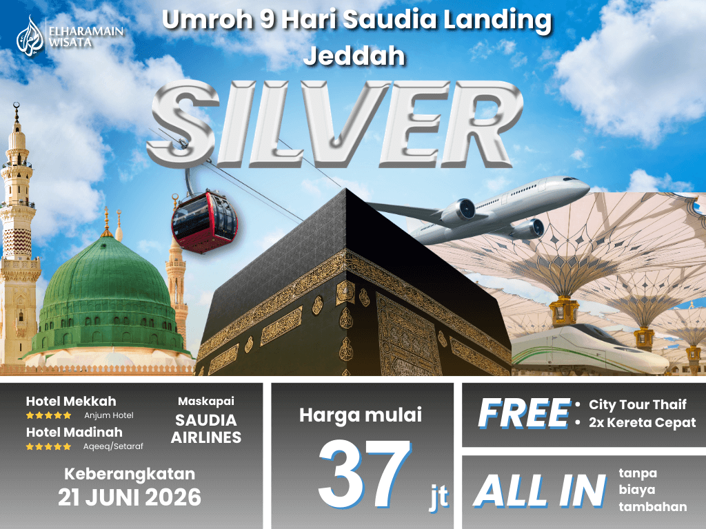 Umroh Silver 9 Hari Saudia Landing Jeddah + Thaif + 2x Kereta Cepat (21 Juni 2026)