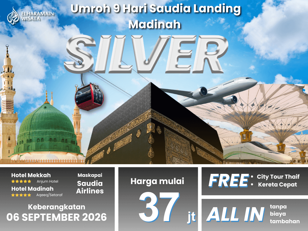 Umroh Silver 9 Hari Saudia Landing Madinah + Thaif + Kereta Cepat (6 September 2026)
