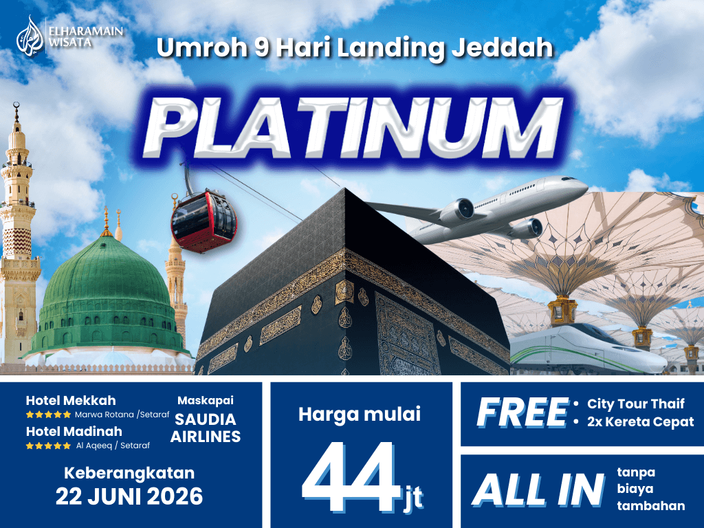 Umroh PLATINUM 9 Hari Saudia Landing Jeddah + Thaif + 2x Kereta Cepat (22 Juni 2026)