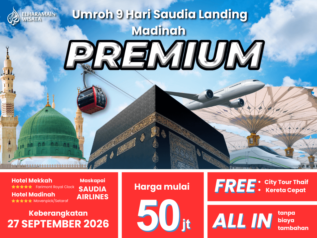 Umroh PREMIUM 9 Hari Saudia Landing Madinah + Thaif + Kereta Cepat (27 September 2026)