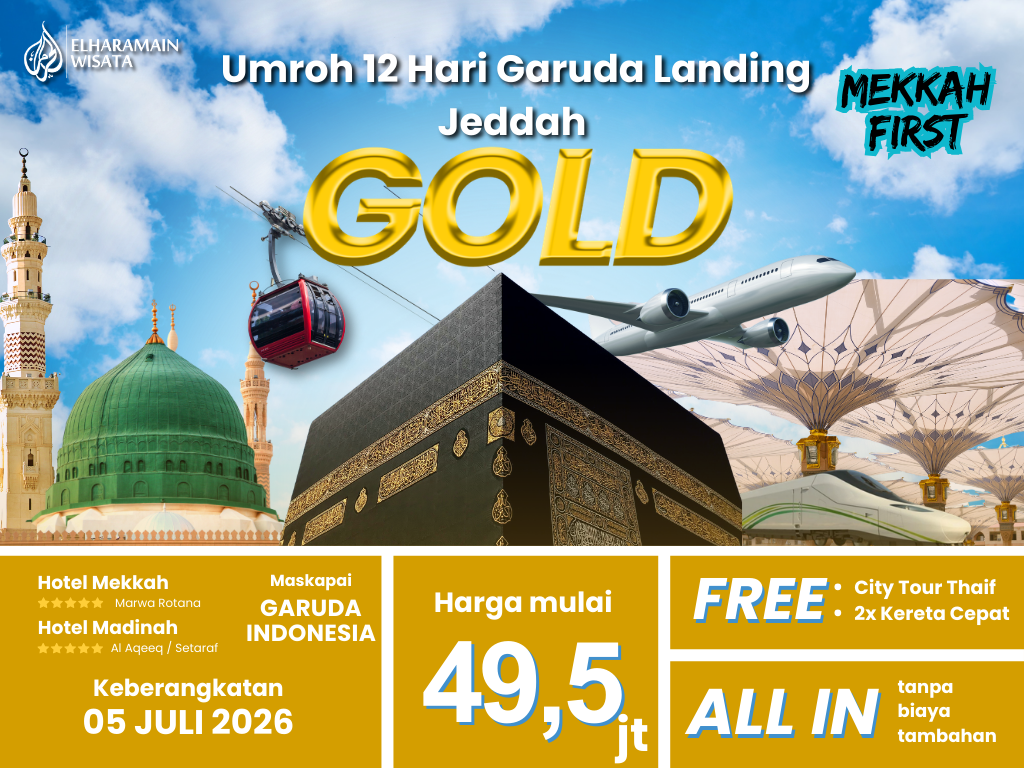 Umroh GOLD 12 Hari Garuda Landing Madinah + Thaif + Kereta Cepat (05 Juli 2026)