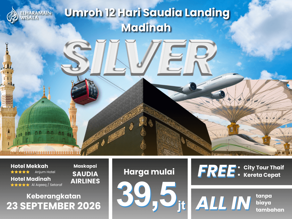 Umroh SILVER 12 Hari Saudia Landing Madinah + Thaif + Kereta Cepat (23 September 2026)