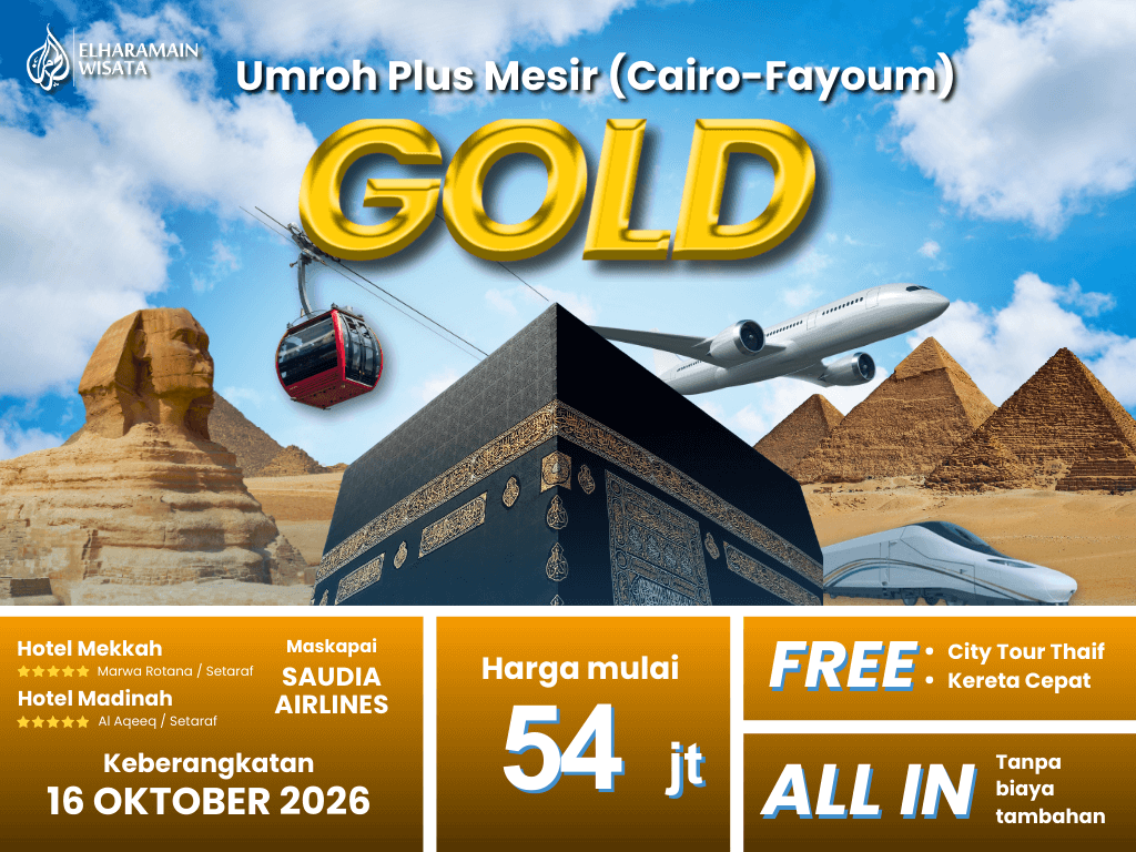 Umroh Plus Mesir (Cairo -Fayoum ) Saudia Landing Madinah + Thaif + Kereta Cepat (GOLD) 16 Oktober 2026