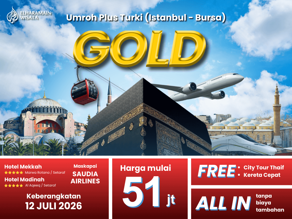 Umroh Plus Turki GOLD (Istanbul -Bursa ) Saudia Landing Madinah + Thaif + Kereta Cepat (12 Juli 2026)